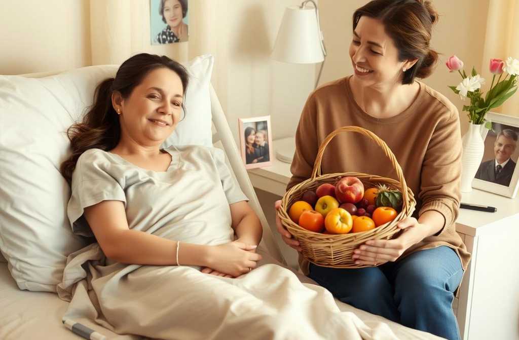Ana yace en una habitación del hospital, su rostro está pálido, pero sus ojos brillan con alivio. Su amiga Esperanza entra cargando una bolsa de frutas y se sienta junto a la cama.