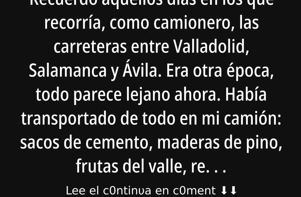 Recuerdo aquellos días en los que recorría, como camionero, las carreteras entre Valladolid, Salamanca y Ávila. Era otra época, todo parece lejano ahora. Había transportado de todo en mi camión: sacos de cemento, maderas de pino, frutas del valle, recambios de coche… Pero nunca imaginé que una vez transportaría una historia capaz de helarme la sangre.
