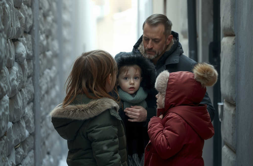 El rostro de la pequeña está enrojecido por el viento y las lágrimas, los labios temblando tanto que apenas articula palabras, y al verlo bien, el miedo en sus ojos se encoge hasta volverse aún más profundo, más aprendido.