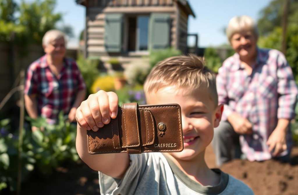 —Me esforcé, abuela, el abuelo no puede por la espalda. ¡Pero miren lo que encontré! ¡Es casi un—¡Es mi cartera, la que perdí el año pasado! —exclamó Manuel, emocionado—. ¡Adrián, qué nieto tengo! ¡No solo cavó el huerto, sino que encontró lo que yo perdí!
