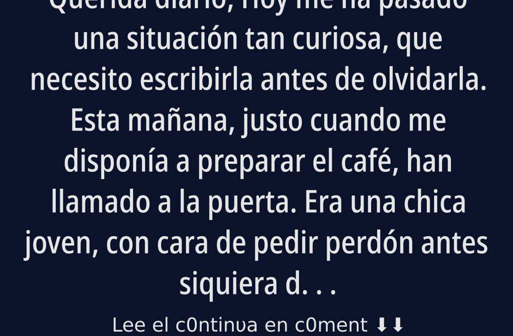 Hoy me ha pasado una situación tan curiosa, que necesito escribirla antes de olvidarla. Esta mañana, justo cuando me disponía a preparar el café, han llamado a la puerta. Era una chica joven, con cara de pedir perdón antes siquiera de abrir la boca.