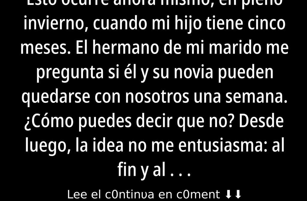 Esto ocurre ahora mismo, en pleno invierno, cuando mi hijo tiene cinco meses. El hermano de mi marido me pregunta si él y su novia pueden quedarse con nosotros una semana. ¿Cómo puedes decir que no? Desde luego, la idea no me entusiasma: al fin y al cabo, nuestro bebé acaba de nacer, no duermo, apenas como, no tengo tiempo para nada y los familiares no dejan de dar vueltas alrededor. Pero pienso, bueno, es difícil, quizás me ayuden, al menos podré descansar un poco y tendré con quién charlar y tomarme un té.