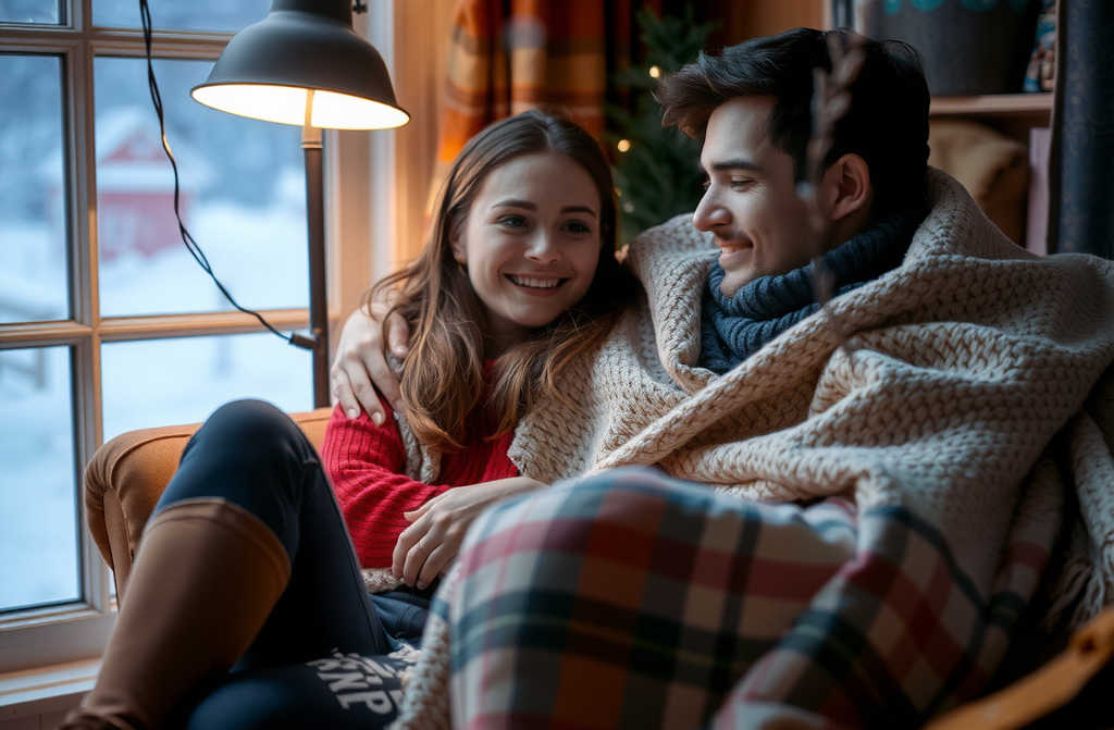 Los dos se habían instalado cómodamente en el sofá, compartiendo la manta y una taza de chocolate caliente. En la televisión, una comedia española ligera hacía de banda sonora. Lucía disfrutaba del humor sencillo, dejándose llevar y sonriendo discretamente. Javier se relajaba, con la cabeza reposando en el respaldo, pero sus ojos volvían una y otra vez a las danzas de los copos tras el cristal, embelesado por el espectáculo invernal.