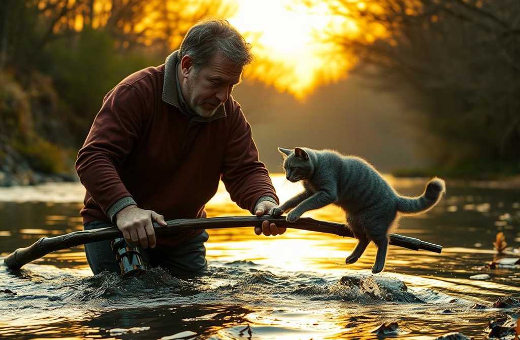 Se quitó la prótesis, la dejó a un lado y entrecerró los ojos para seguir el lento avance de un tronco caído que flotaba en el agua. ¿Se hundiría o no? A mitad de camino, quedó atascado en un banco de arena. “Atrapado”, pensó Miguel. En diez minutos, cuando subiera el caudal, la corriente lo arrastraría. Pero entonces notó algo extraño: entre las ramas, una criatura pequeña forcejeaba. Al inclinarse, lo reconocióera un gato. Gris, empapado, tembloroso, intentaba desesperadamente trepar. Ahora estaba en la rama más alta, a unos veinte metros de la orilla, aferrándose con las uñas.