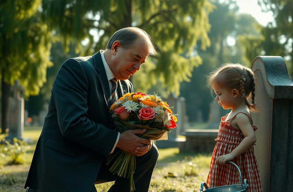 Dejó el cubo en la tumba, y Leticia regó las flores. Alejandro miró la lápida y se heló. La foto era de la vecina que cuidaba la casa. La madre de Lucía. Miró a la niña.