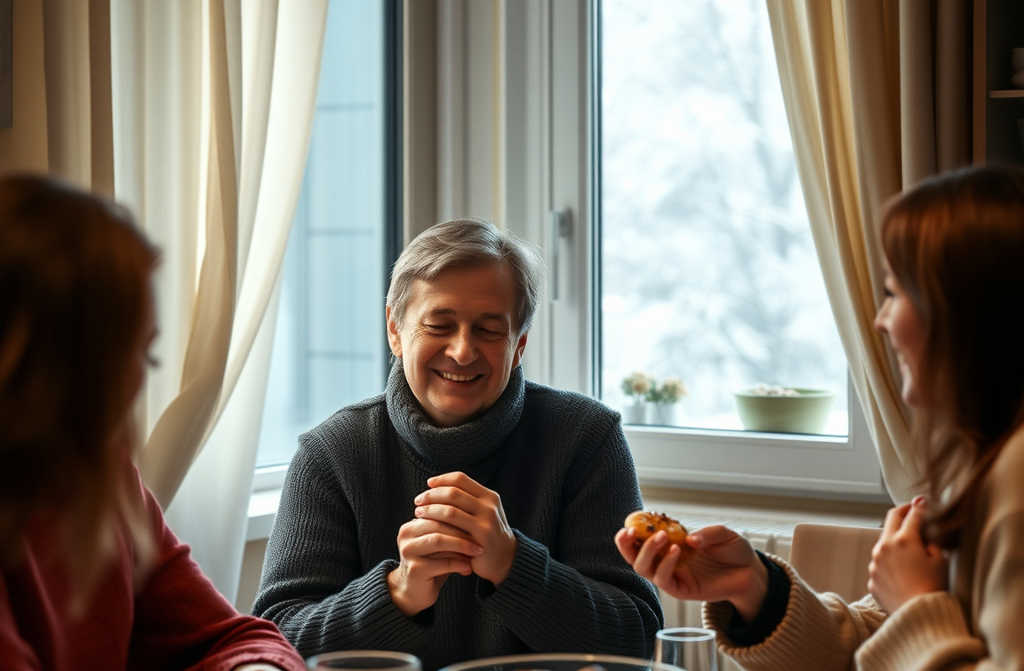 Luego vino la vecina Nina y compartieron té y dulces. El ánimo se llenó de calor y de esa alegría sencilla.