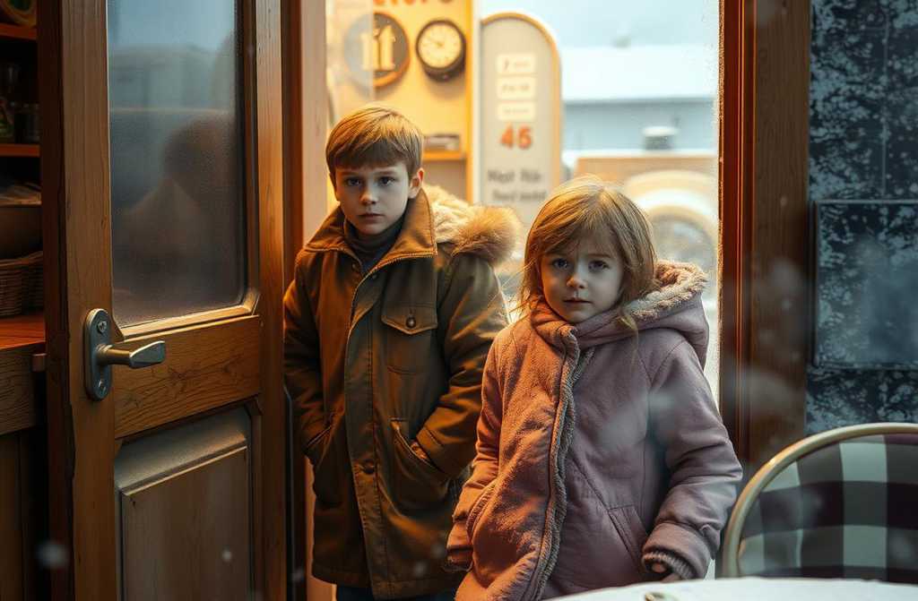 Entonces, un leve tintineo sonó en el aire, casi un murmullo: el sonido del viejo timbre de latón que colgaba sobre la puerta desde hacía treinta años. Tras él, dos niños. Helados, empapados, hambrientos y asustados: un niño con una chaqueta demasiado grande y una niña con un fino jersey rosa, ambos desentonando con la gélida realidad de aquella noche.