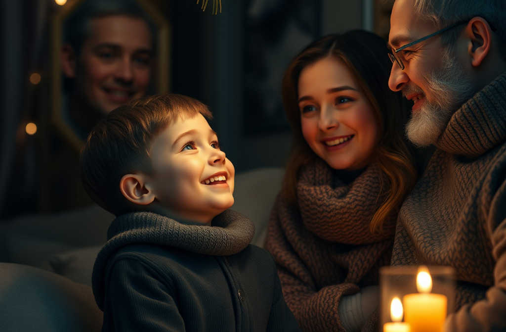Así que, de nuevo, volví a ser Papá Noel por Navidad. Mamá sacó el traje del armario, le quitó la funda de plástico y le echó aún más purpurina. La barba blanca, recién peinada, ocultaba bien mi cara. Me pegué unas cejas postizas y, mirándome al espejo, me encontré convincente. Mamá suspiró y dijo: