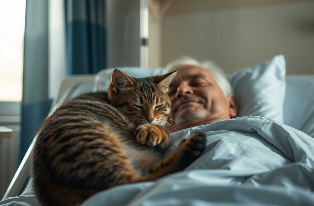 El trayecto a La Paz fue eterno. Cada semáforo en rojo era una agonía. Se sorprendió pensando cuánto hacía que no veía a su padre. ¿Tres semanas? ¿Cuatro? Ya dudaba. Al llegar, se dirigió a la habitación 312. Se detuvo en la puerta, escuchando voces dentro. Respiró hondo y entró. Ante sus ojos, un gato atigrado dormitaba acurrucado junto al pecho de Gerardo, ronroneando con fuerza.