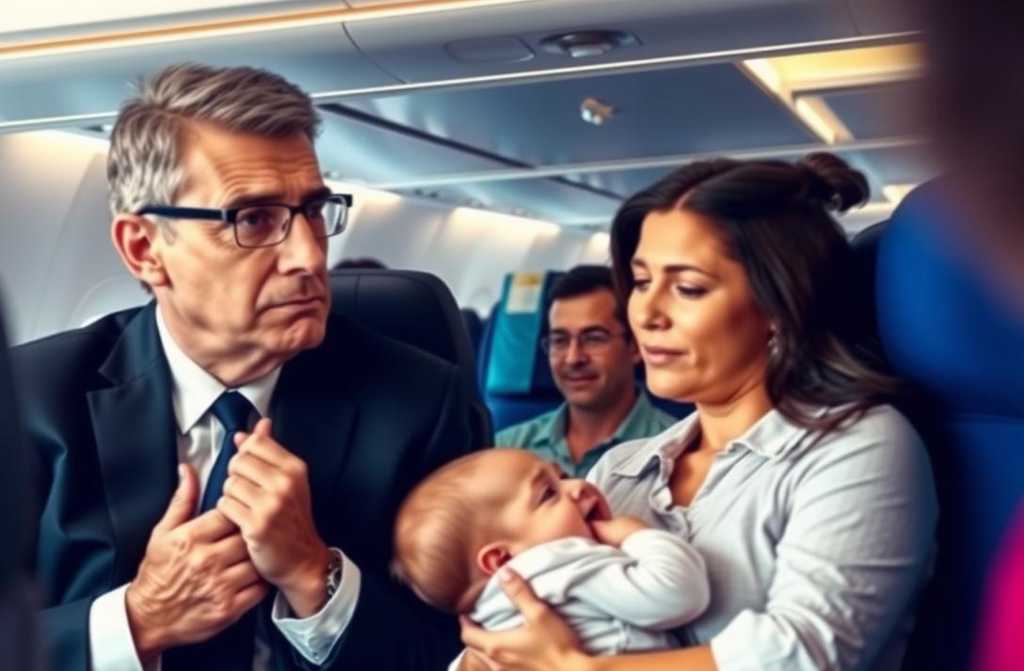 UN PASAJERO DE PRIMERA CLASE SE BURLA DE UNA MADRE CON UN BEBÉ LLORANDO—SIN SABER QUE DESTRUYE SU PROPIO FUTURO