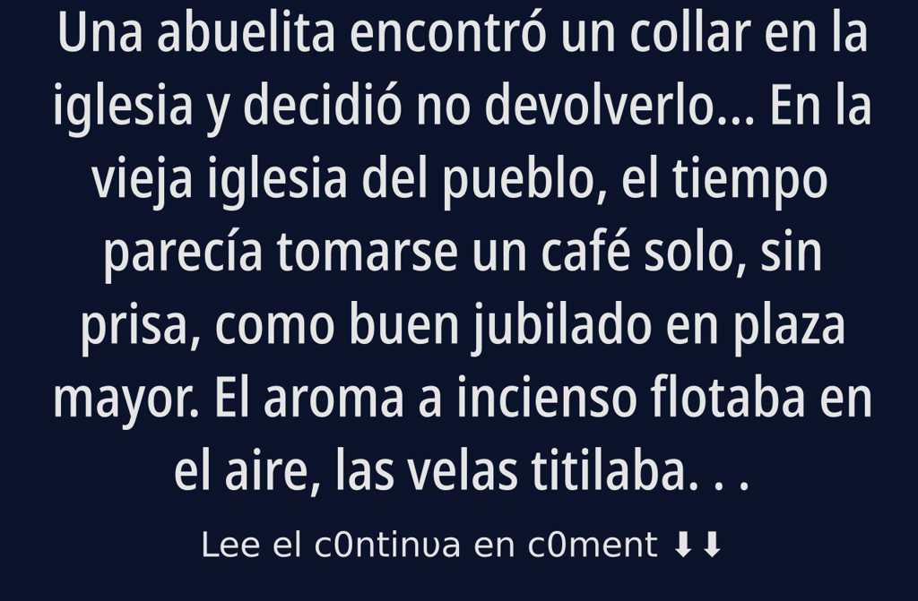 Una ancianita encuentra un collar en el suelo de la iglesia y decide no devolverlo… En la iglesia antigua del pueblo, donde el tiempo parece detenerse, una abuelita humilde y trabajadora tropieza con un collar con medallón en forma de corazón. Al abrirlo, descubre dos fotos diminutas y, de repente, siente que sus raíces tiemblan bajo sus pies, pues una de las imágenes refleja su propio rostro, como visto en un espejo del pasado. Con el corazón latiendo, decide quedárselo hasta descubrir la verdad, aunque sepa que no le pertenece. Tras la misa, lleva el collar al párroco, quien le revela la visita reciente de una mujer de ciudad que vino a buscar a su hermana perdida. La abuelita, guiada por un presentimiento y la fe, se deja llevar hasta una casa del pueblo, donde dos vidas separadas por el destino y los secretos vuelven, por fin, a encontrarse en un abrazo que sana viejas heridas. A veces, Dios no olvida; a veces, lo perdido es solo una señal de que el reencuentro está por llegar. Escribe en los comentarios “DIOS NO OLVIDA” si también crees que nada ocurre por casualidad. 🙏