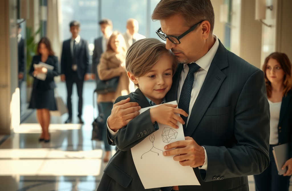 En ese momento se abre el ascensor y sale un hombre alto, elegante, con un traje de esos que no se ven ni en las rebajas de El Corte Inglés. Iba tan metido en sus cosas que ni miraba alrededor, pero en cuanto ve al niño y a la madre, se le ilumina la cara. El niño grita: “¡Papá!”, y sale disparado hacia él, que lo levanta en brazos y lo abraza con esa ternura que, de verdad, solo un padre puede dar.