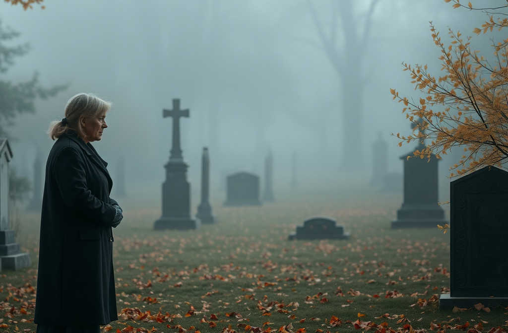 En el aniversario de su muerte, decidió visitar su tumba sola. Sin acompañantes. Sin cámaras. Solo las frías lápidas y su corazón cargado de pena.