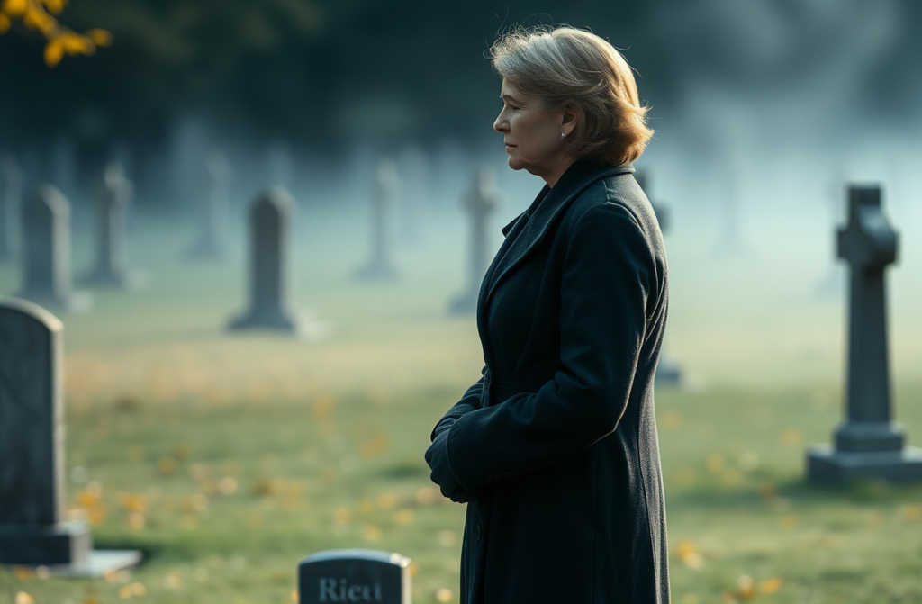 El día del aniversario de su muerte, decidió visitar su tumba sola. Sin acompañantes. Sin cámaras. Solo las frías lápidas y su corazón apesadumbrado.