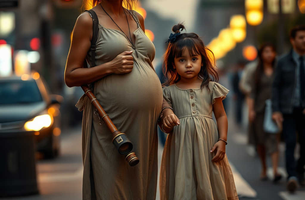 Hoy, al despertar bajo la luz tenue del farol de la Gran Vía, siento el peso de la vida y la dulzura de la esperanza. Cada mañana me paro en la esquina de la calle, junto al paso de peatones, con mi vieja flauta de madera que brilla bajo el sol. El vestido está gastado, la barriga redonda de mi embarazo se hace notar, pero mi espíritu sigue entero.