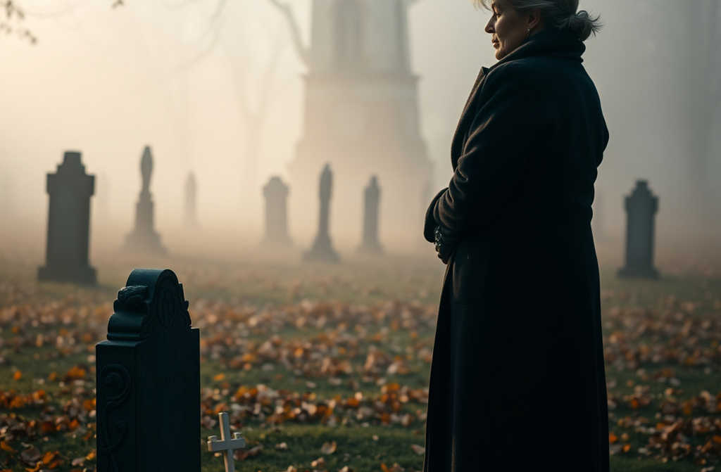 En el aniversario de su muerte, decidió visitar su tumba sola. Sin acompañantes. Sin cámaras. Solo las frías lápidas y su corazón cargado de pesar.