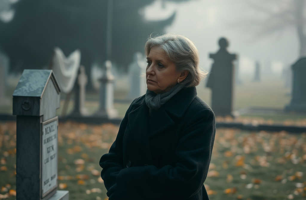 En el aniversario de su muerte, decidió visitar su tumba sola. Sin acompañantes. Sin cámaras. Solo las frías lápidas y su corazón apesadumbrado.