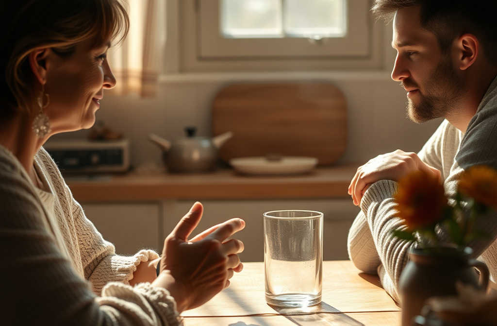 Javier baja la presión del agua. Marina, resignada, apaga el grifo, se seca las manos y toma asiento.