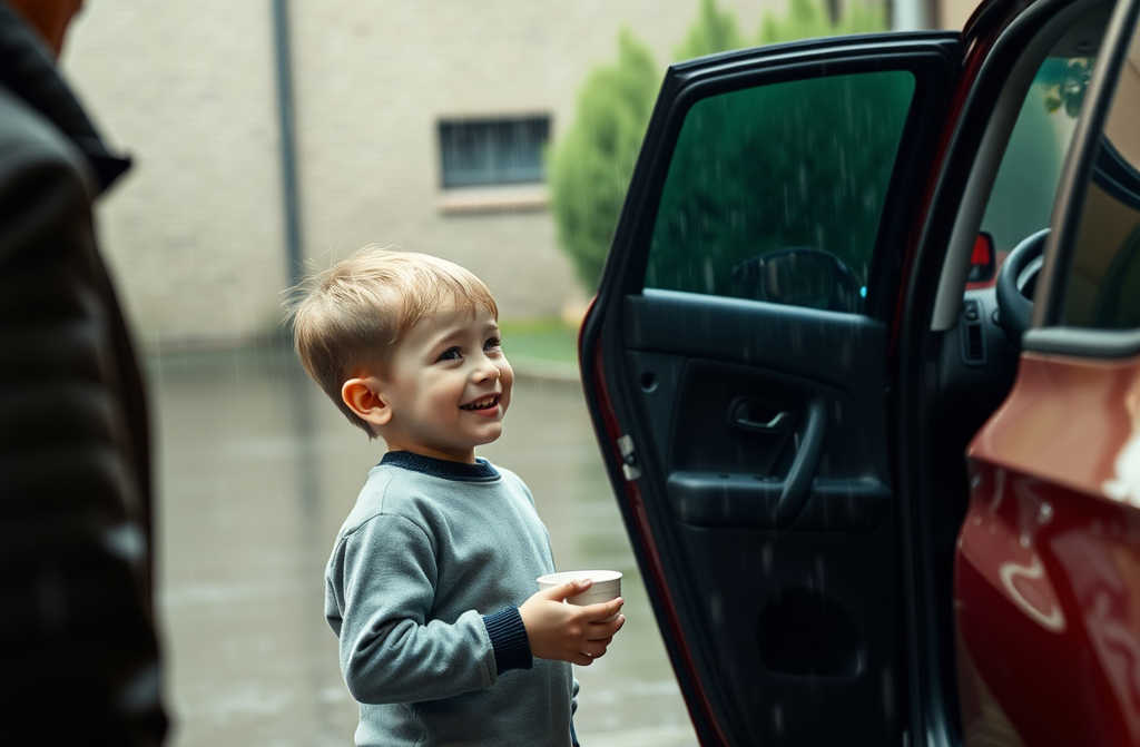 El niño dudó un instante, pero la lluvia se intensificó. Subió al asiento más alto, cerró la puerta. El ruido del chaparrón apenas se oía dentro. Sus ojos brillaban al observar el tablero iluminado en rojo.