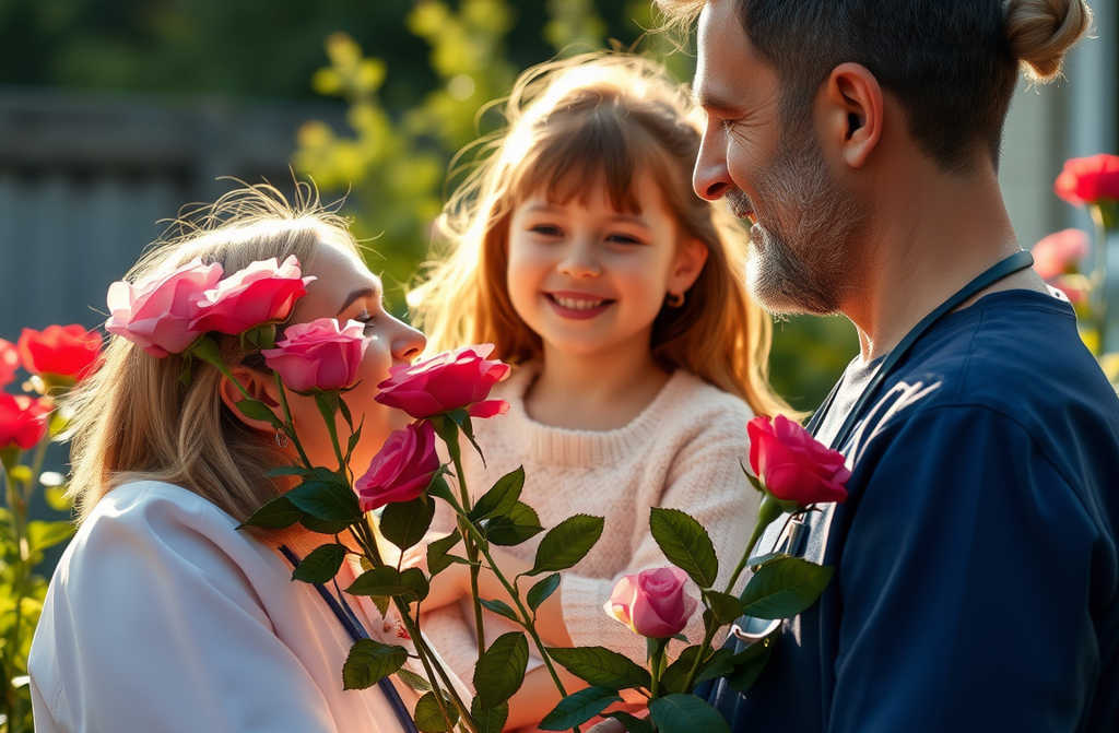 Diego se ruborizaba cada vez que lo miraba y eso que ella apenas podía aún. Carmen, madre en guardia, lo observaba todo pero Diego parecía sinceramente entusiasmado. El día que le quitaron la venda, apareció con un ramo de rosas tremendo. María del Valle se quedó en shock al ver, al fin, todo con sus propios ojos: el ramo y al apuesto doctor rubio de ojos grises.