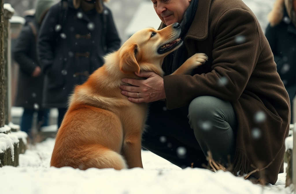 Asunción apenas reacciona mientras Miguel, agachado, abraza a Berta, a la que no veía desde hacía siete años. Y Berta, encaramada, le lame la cara, feliz.