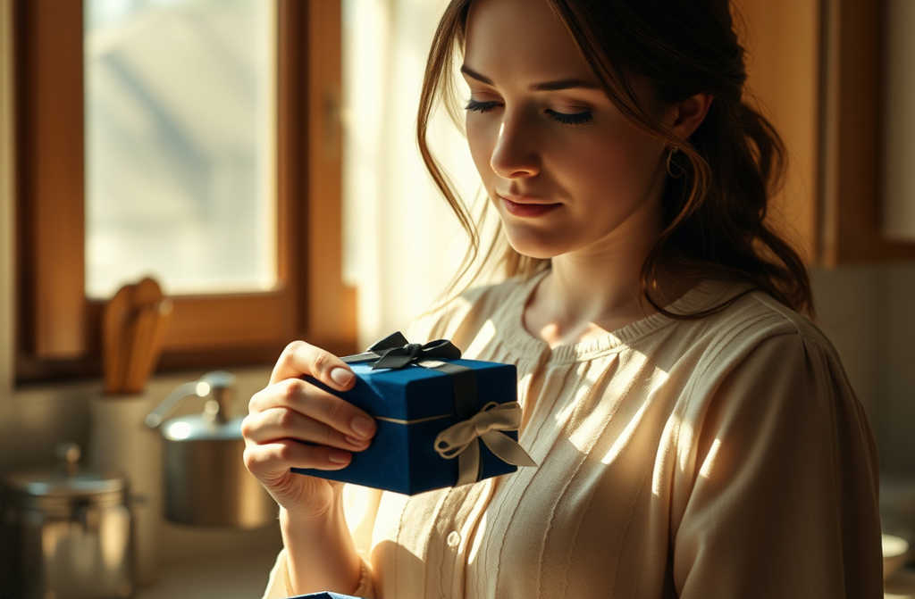 Irene aprieta la caja contra el pecho y las lágrimas le brotan sin querer. Se culpa por haber pensado que su marido era egoísta; él, aunque se queja por la carne, ha gastado esa cantidad en un regalo para ella. La culpa le pesa.
