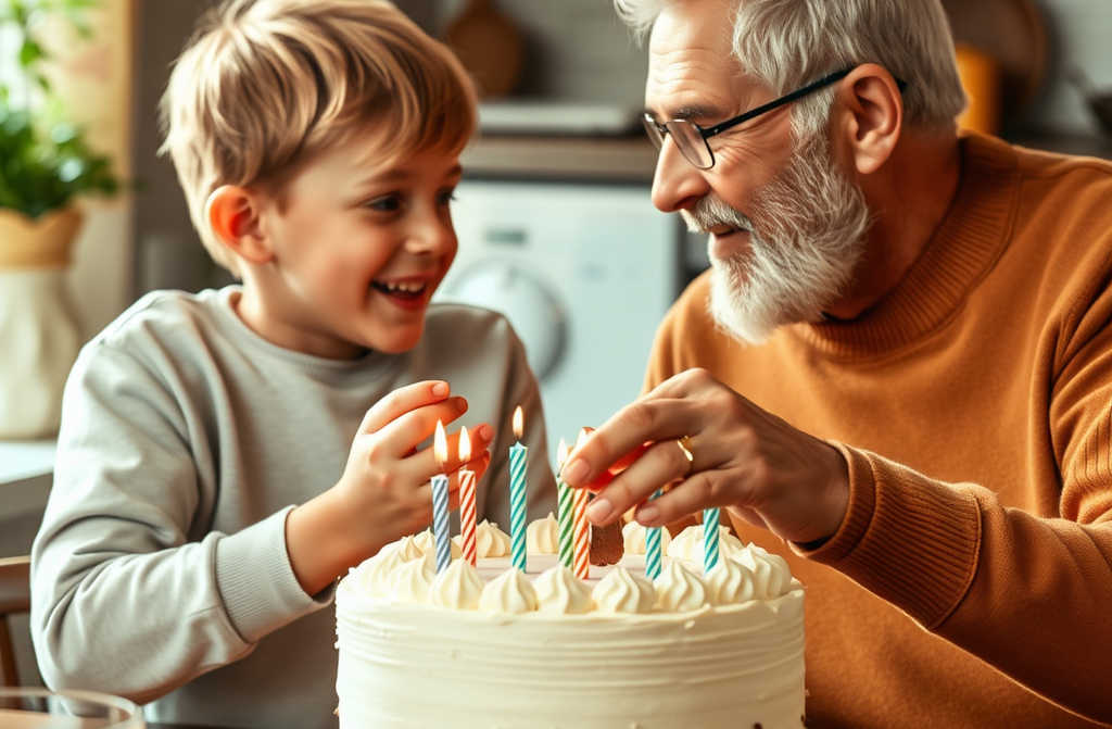 Para comprar una tarta para el abuelo él nunca ha tenido una.